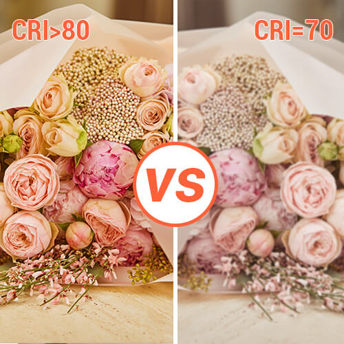CRI sijalice veći, sposobnost prikazivanja boja jača. Izvor svjetlosti sa CRI od 70 ili 80 iznad za osvjetljenje smatra se kvalifikovanim izvorom svjetlosti. Na ovaj način dobijate optimalno iskustvo, sve boje su žive i prirodne.